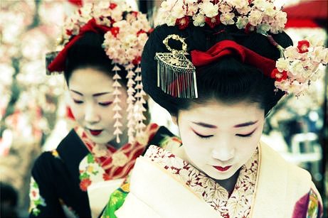 Из кусочков старых кимоно, тщательно подобранных по цвету и узору, складывались цветы, листья и бабочки, чтобы украсить прически мейко, учениц гейш, объемными шпильками-заколками. Это относительно несложное, но кропотливо-медитативное рукоделие: из квадратиков ткани, лучше натурального шелка, формируются определенными видами сложения лепестки. При формировании пользуются пинцетом, а чтобы зафиксировать форму лепестка - клеем. Дальше лепестки складываются один в другой, прикрепляются к заготовке, украшаются бусинами и тычинками - и вот оно, аутентичное этническое украшение для шпильки, гребня или заколки.