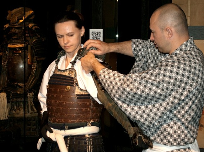 Демонстрация облачения в доспех (зал даймё). Проводят Дмитрий Белинцев и Оксана Пшемыская (Этно-шоу "Последний самурай").
