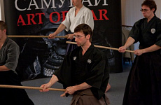 Демонстрация боевых искусств айкидо, иайдо и муген рю.