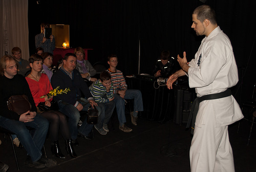 Ведет руководитель будо клуба «КРАСНЫЙ САМУРАЙ» Сергей Матвеев, 1 дан Киокушинкай каратэ. В программе: демонстрация базовой техники КАРАТЭ, а так же основных комплексов